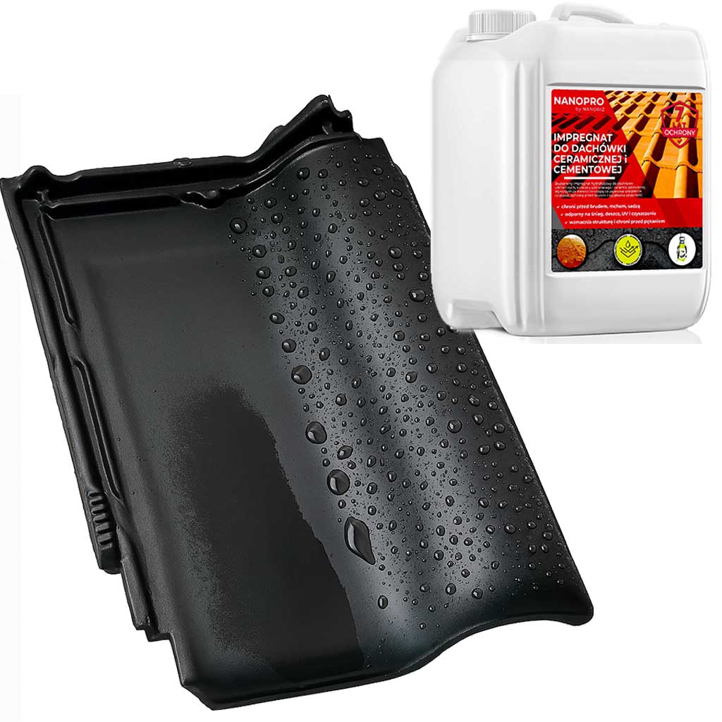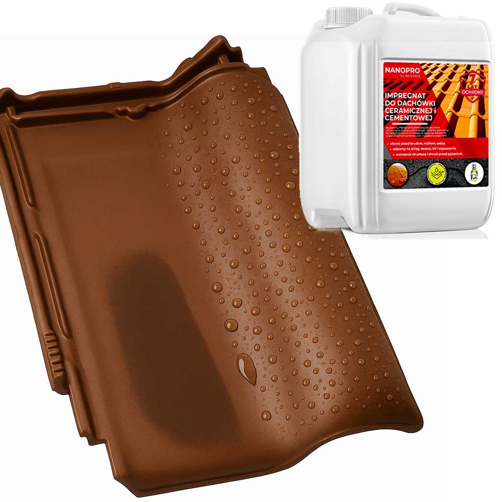 NANOPRO Impregnat do dachówki ceramicznej i betonowej to specjalistyczny środek zapewniający skuteczną ochronę dachówek. Mikroskopijne pory powodują wnikanie wilgoci w strukturę materiału. Wraz z wilgocią, dachówka absorbuje także różnego rodzaju zanieczyszczenia atmosferyczne, takie jak: sadza, pyły oraz spaliny. Czynniki te negatywnie oddziałują na stan techniczny dachówki. Częstym problemem jest również pojawianie się zielonych przebarwień na powierzchni dachówki, które są efektem rozwoju organizmów żywych, takich jak mchy, porosty i grzyby. NANOPRO Impregnat do dachówki ceramicznej i betonowej naniesiony na powierzchnię, praktycznie nie zmienia jej wyglądu oraz zachowuje właściwości paroprzepuszczalne, umożliwiając materiałowi oddychanie.