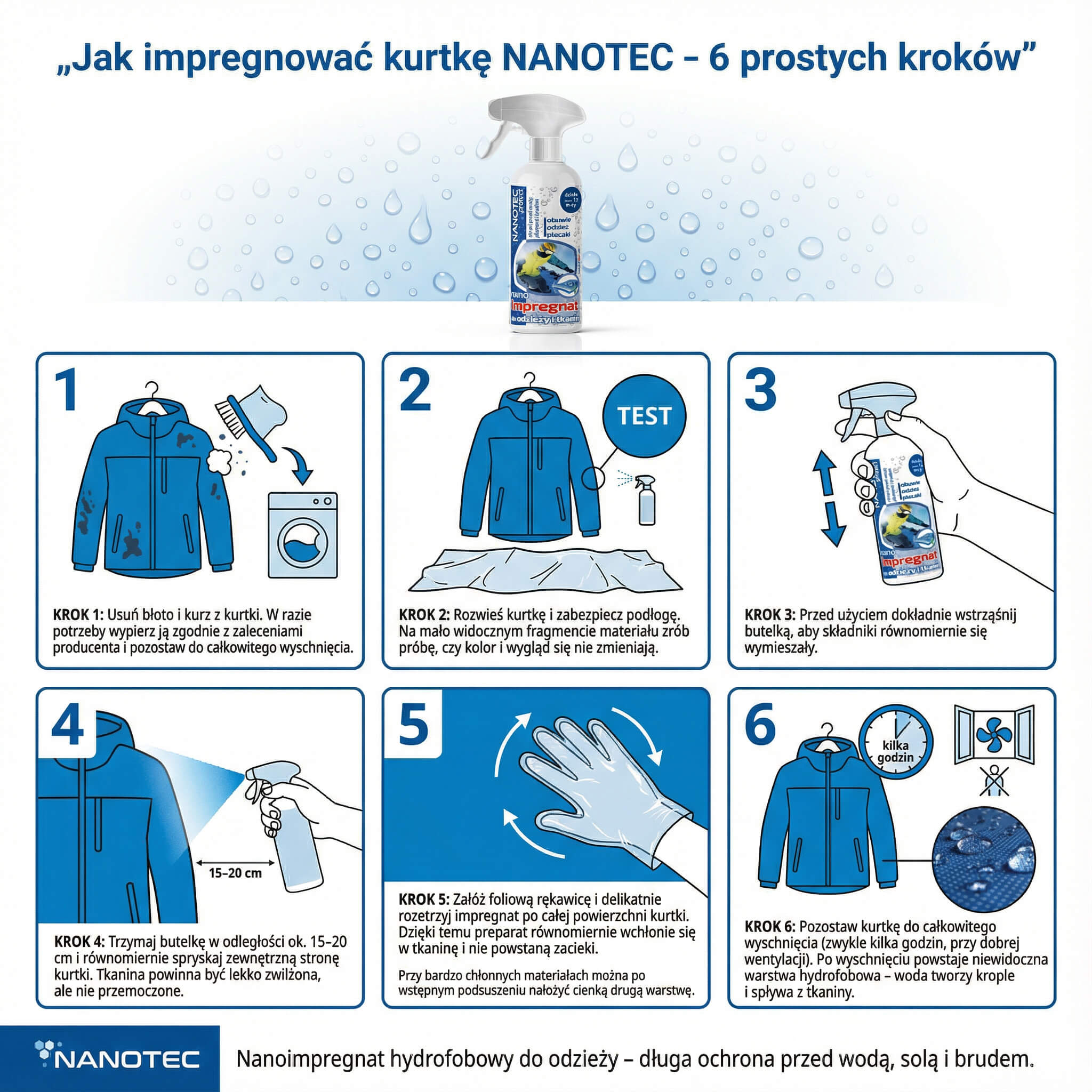 Sposób użycia NanoTec – Nanoimpregnat Hydrofobowy do Odzieży