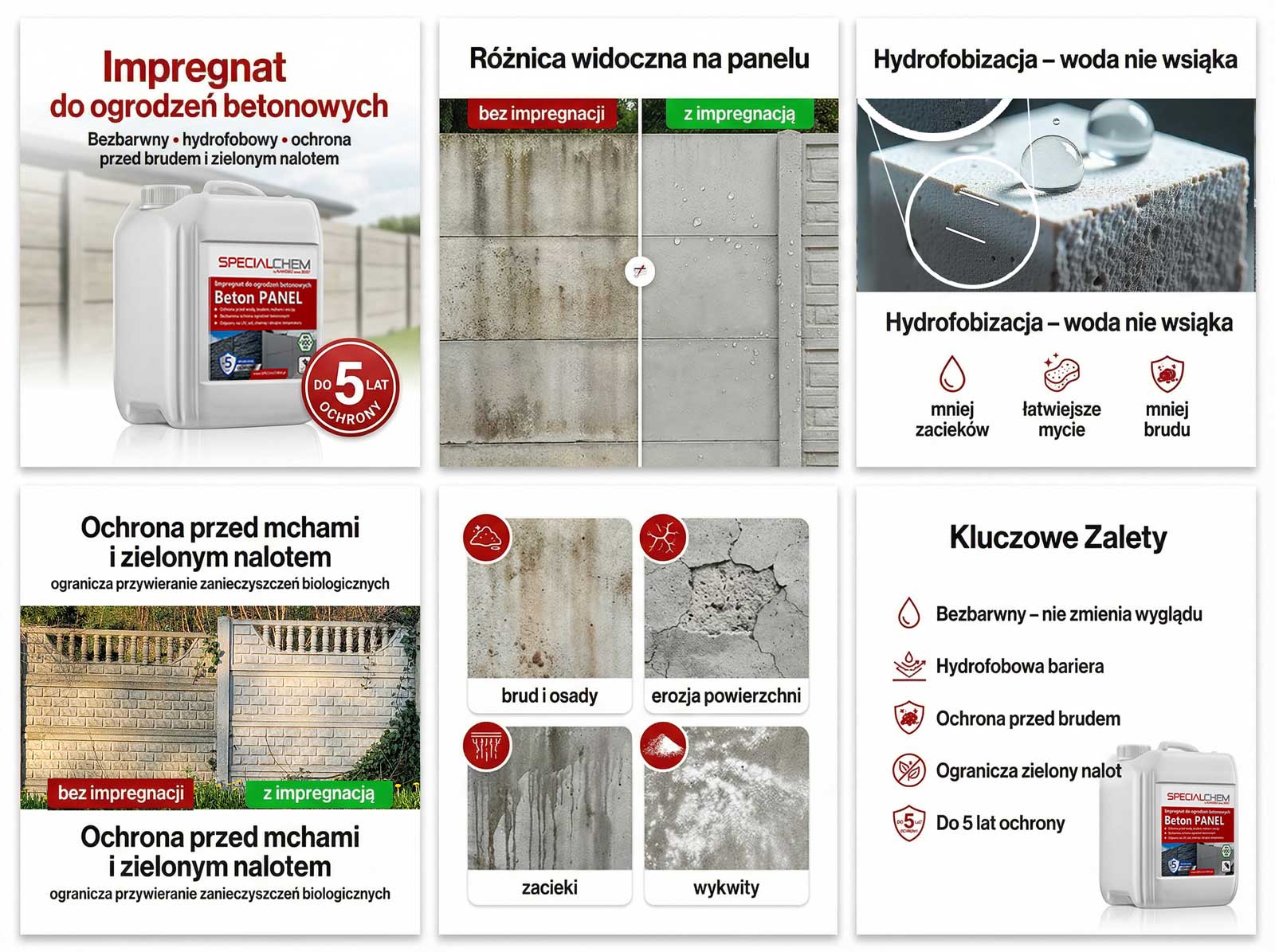 Kluczowe zalety Specialchem BETON PANEL do impregnacji ogrodzeń: